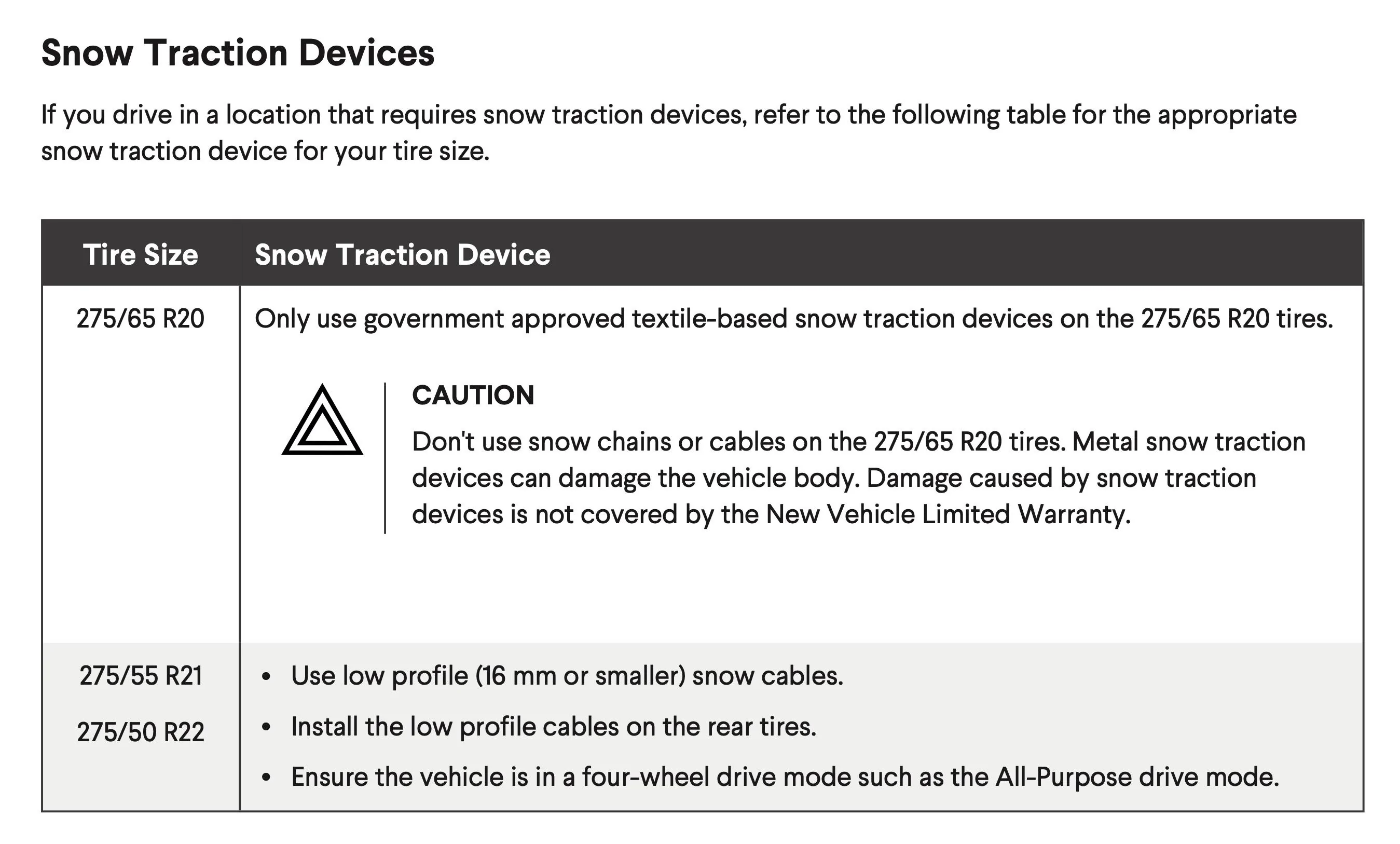 Snow chain compatibility (according to customer service) @ Reddit